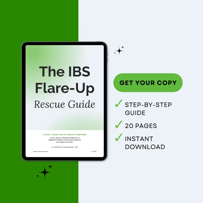 Inside the IBS Flare-Up Rescue Guide, I’ll show you how to calm painful flare-ups, reduce bloating and discomfort, and feel confident managing your symptoms.